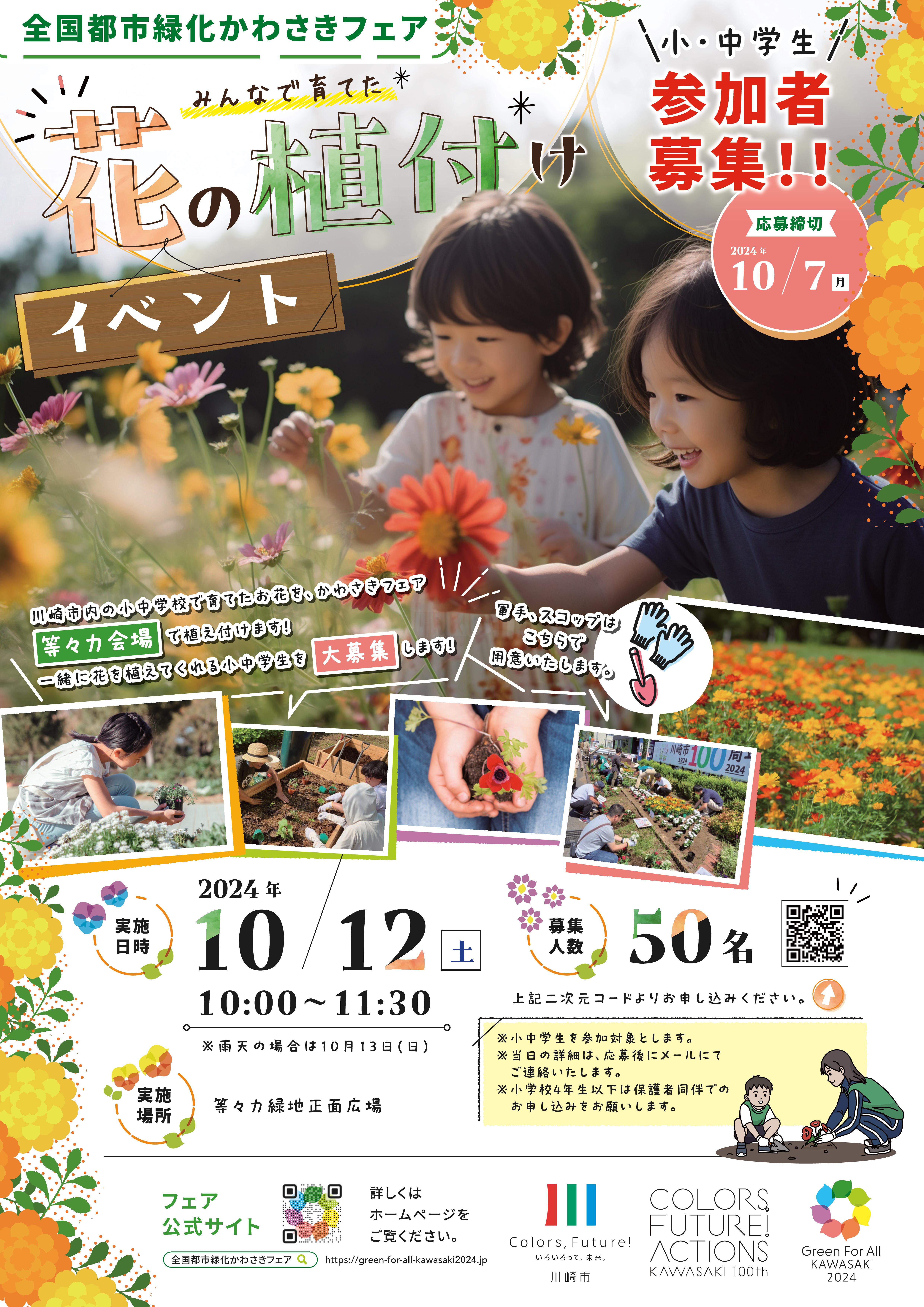 【小中学生大募集】等々力緑地会場にて市内小中学校で育てた花の植え付けイベントを行います!【募集は終了しました。】