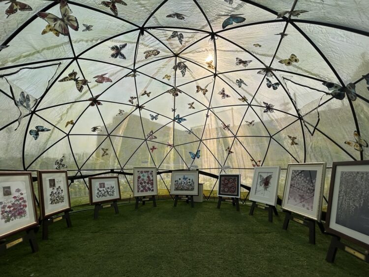 秋のメインガーデンを彩った草花の押し花アートやちょうちょのオブジェなど、花畑に包まれた今ここでしか出会えない空間をお楽しみください。