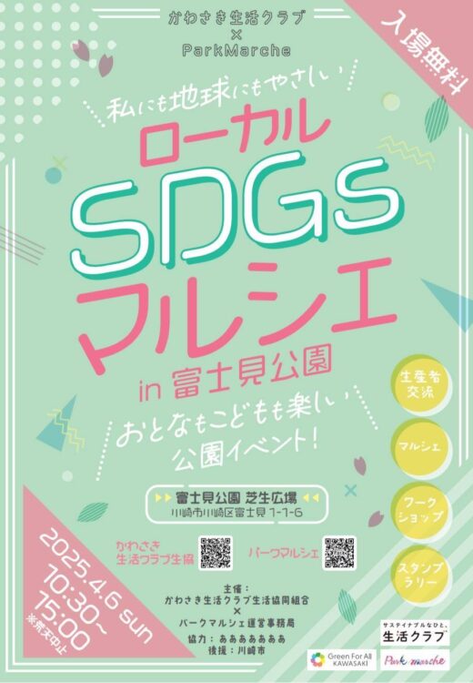 【富士見公園会場:4/6(日)※雨予報のため中止】ローカルSDGsマルシェ✖パークマルシェinかわさきフェア富士見公園