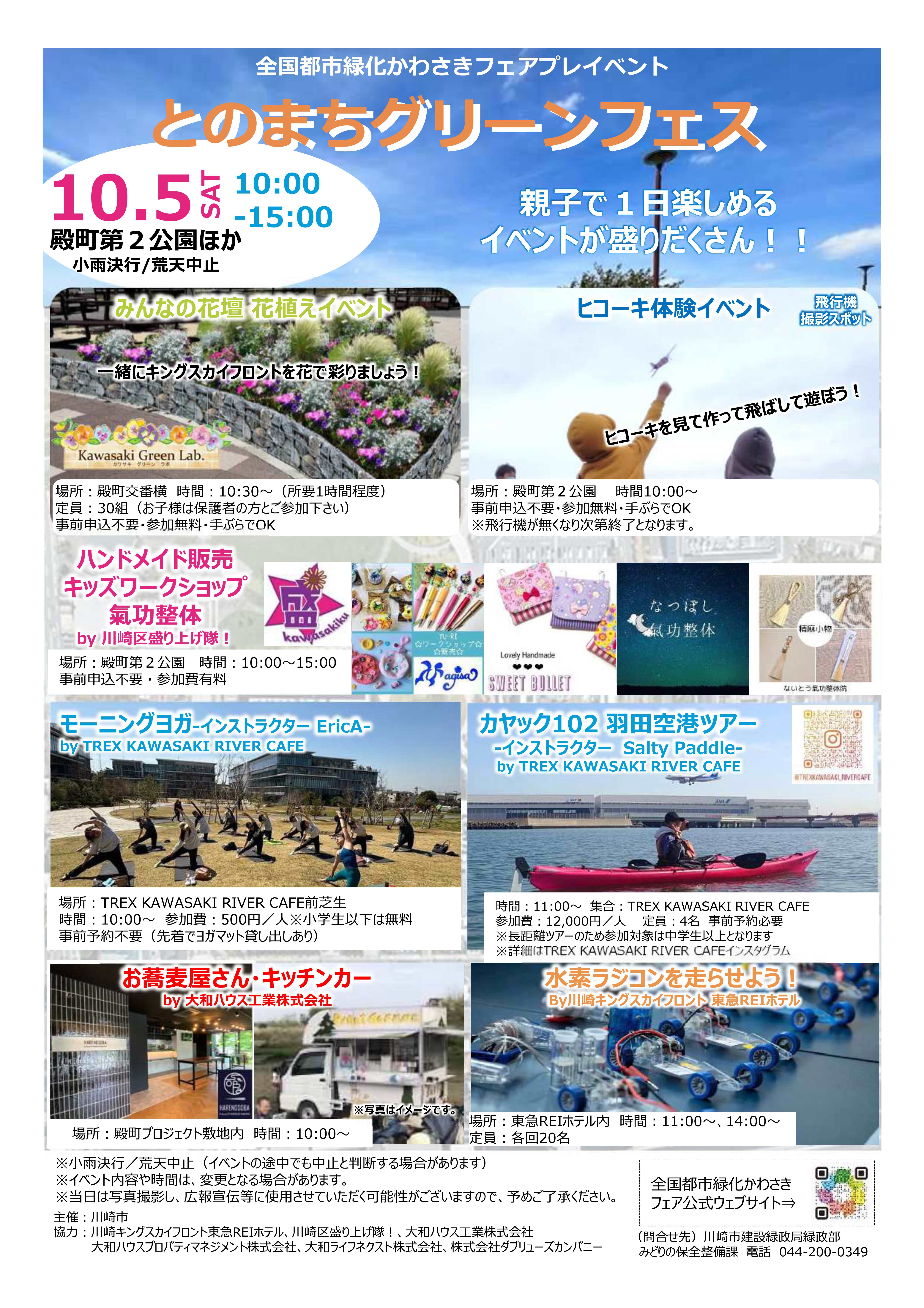 10月5日(土)に、川崎区殿町のキングスカイフロントにおいて、「全国都市緑化かわさきフェア」のプレイベントとして「とのまち グリーンフェス」を開催します。