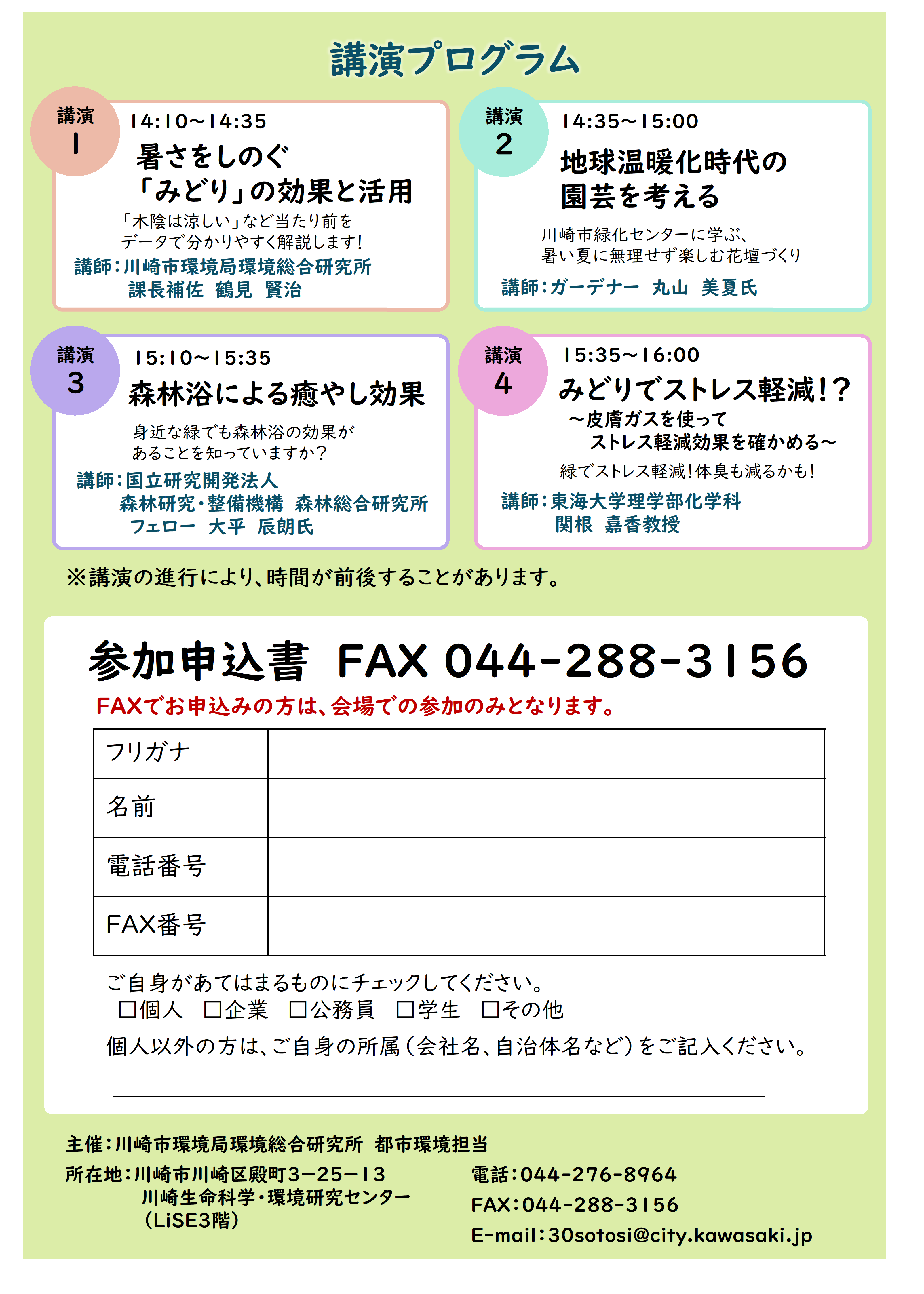 主催:川崎市環境局環境総合研究所 都市環境担当