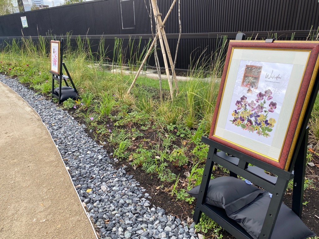 日本を代表する押し花作家、杉野宣雄氏の作品や同氏監修の40点の作品による展示が富士見公園の野花のレインガーデンを彩る30日間