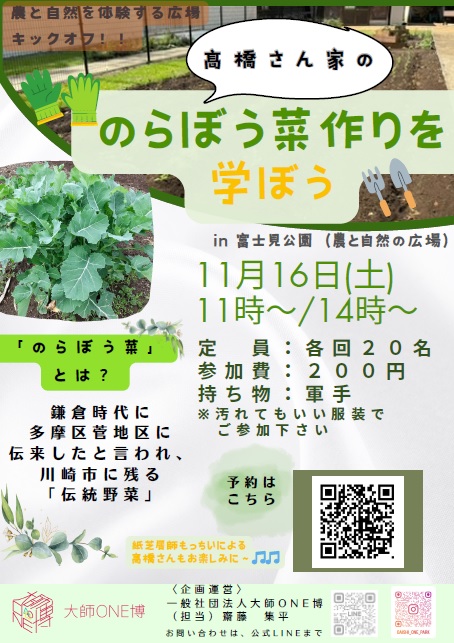 【富士見公園会場:11/16(土)】高橋さん家ののらぼう菜作りを学ぼう in富士見公園(農と自然を体感する広場)