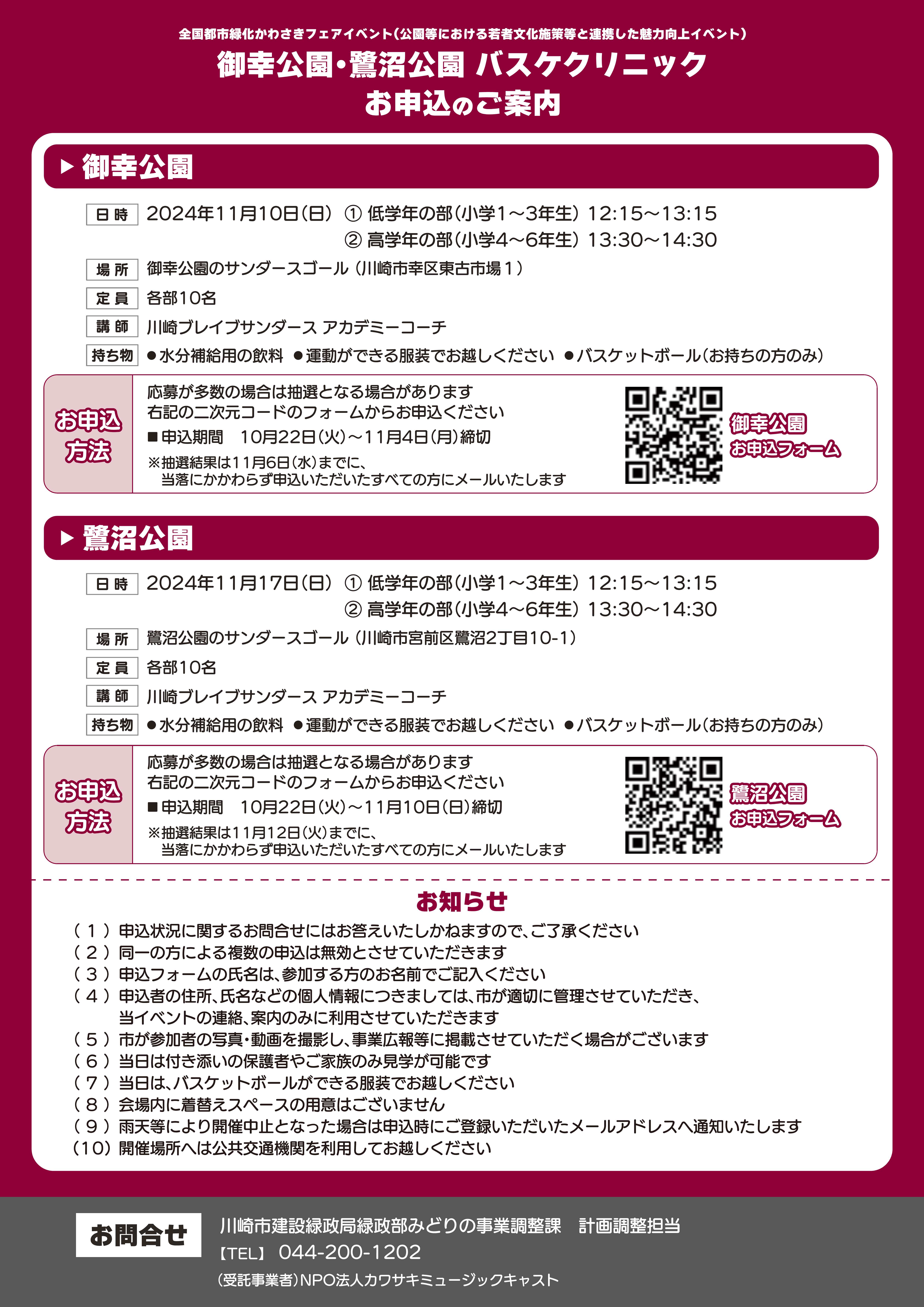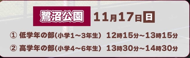 【11月10日】御幸公園(申込終了)・【11月17日】鷺沼公園(申込受付中)