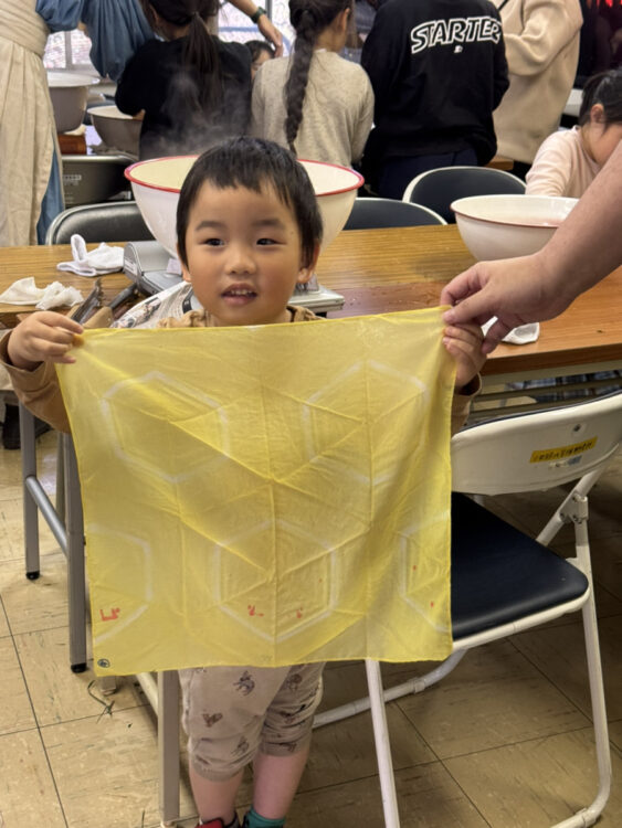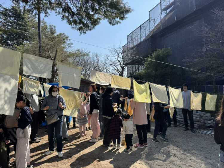 草木染めの大きな布に絵を描こう IKUTA FLAG ART & PARADE