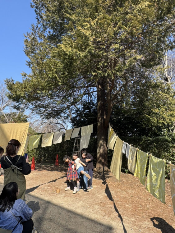 生田緑地の草木を採取して染色をした色とりどりの布を活用し、