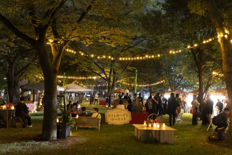 いつもの芝生広場が、あたたかな灯がともる幻想的なナイトマーケットに!