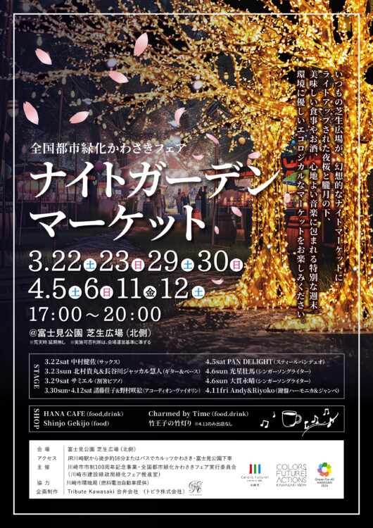 【富士見公園会場:3/22(土)、3/23(日)、3/29(土)、3/30(日)、4/5(土)、4/6(日)、4/11(金)、4/12(土)】tribute 花と緑 ナイトガーデンマーケット