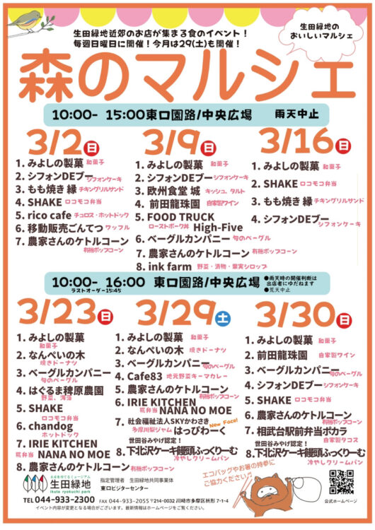 【生田緑地会場:会期中土日(3/22を除く)】森のマルシェ