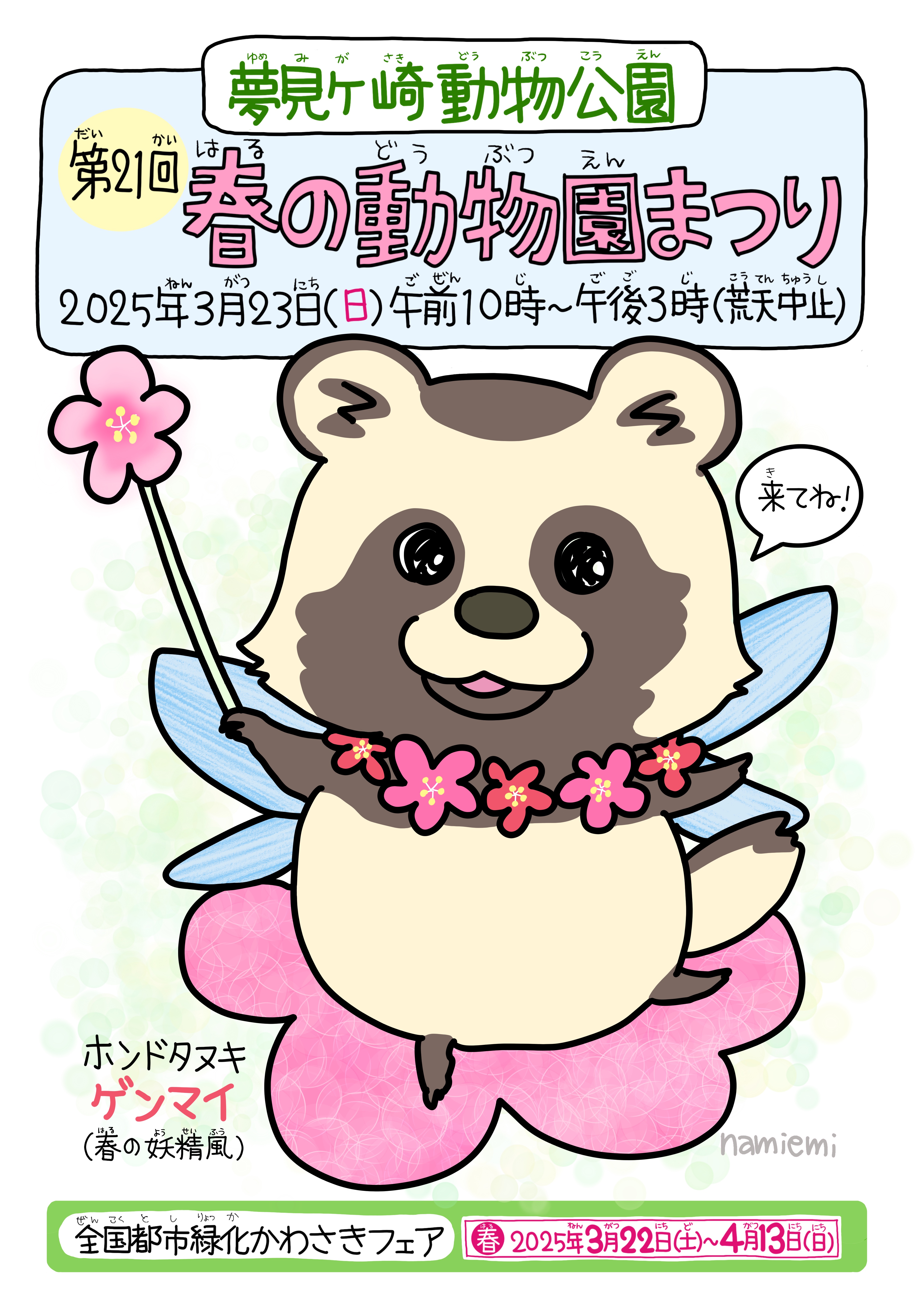 3月23日(日)、夢見ヶ崎動物公園にて春の動物園まつりが開催されます。