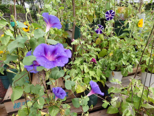 「暁の海」「暁の紅」「暁の舞」「富士の混合」「西洋系星の混合」「西洋系フライングソーサー」といった様々な種類のあさがおを見ることが出来ますので、午前中の早い時間に是非、ご来場ください!