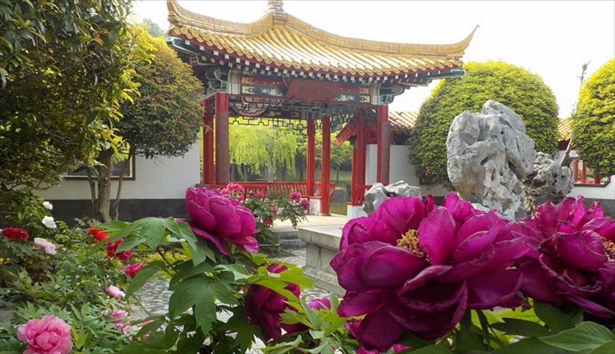 大師公園のシンボルとなっている中国庭園瀋秀園は、川崎市と中国瀋陽市との友好都市の記念に贈られた庭園です。これまでボタンの数を増やし、昨年は160輪以上の花が咲きました。見頃は4月の予定ですが、お越しの際は、事前に管理事務所にご確認ください。
