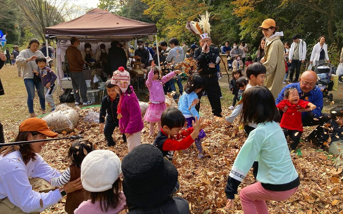 - イベント「ひがしたかねパーク大作戦」落ち葉プール
