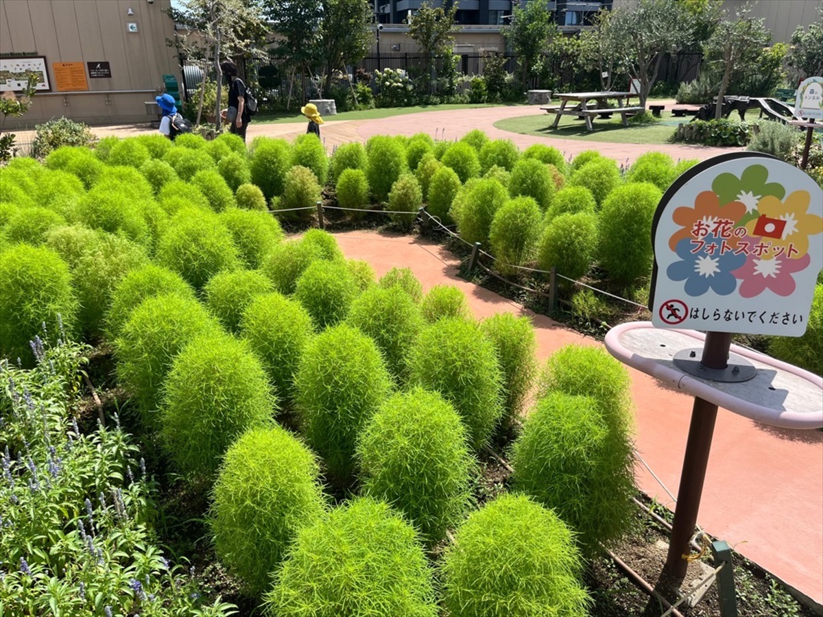 コキアが花壇に植えられることは開館以来初めてなので、緑色から赤色へ変化する過程をお楽しみください。