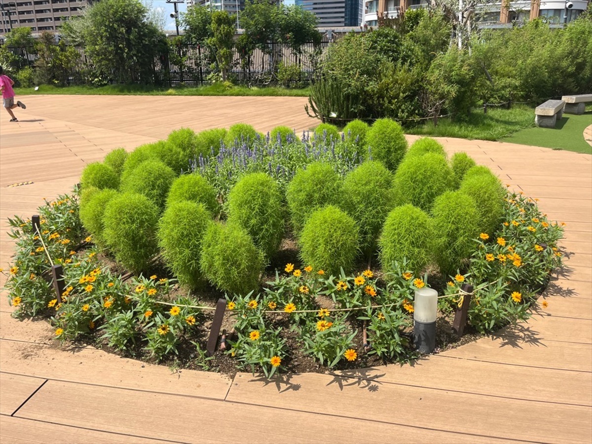 2024年9月からはコキアを中心に紫やオレンジ色のお花が咲き、秋らしい暖かい色味で屋上を彩っています。