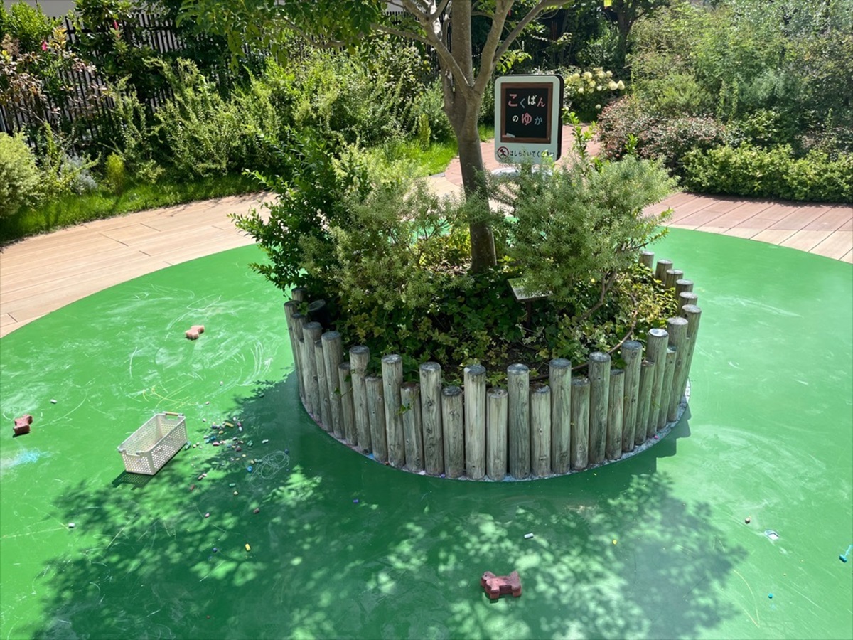 そんな当館の屋上に位置するぐらんぐりんガーデンは、花や実がなる植物をはじめ、木製にこだわった遊具やベンチはぬくもり溢れる空間を提供し、お客様の思い出づくり・交流の場としてご利用いただいています。